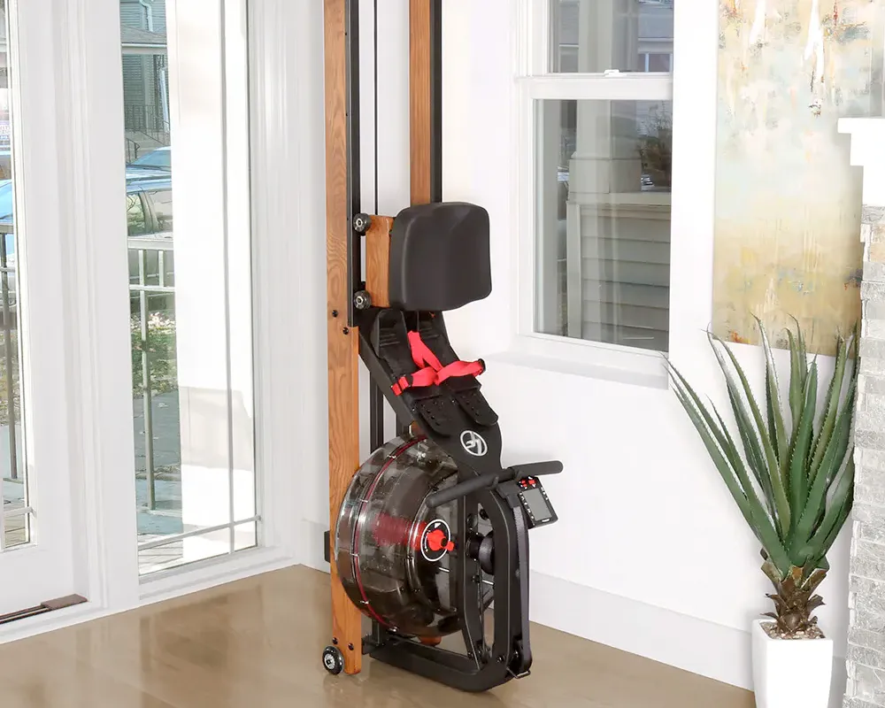 Einfach zu transportieren und mit geringem Platzbedarf für jeden Raum geeignet. Im aufrecht gelagerten Zustand ist der Ruderer weniger als 213 cm hoch.